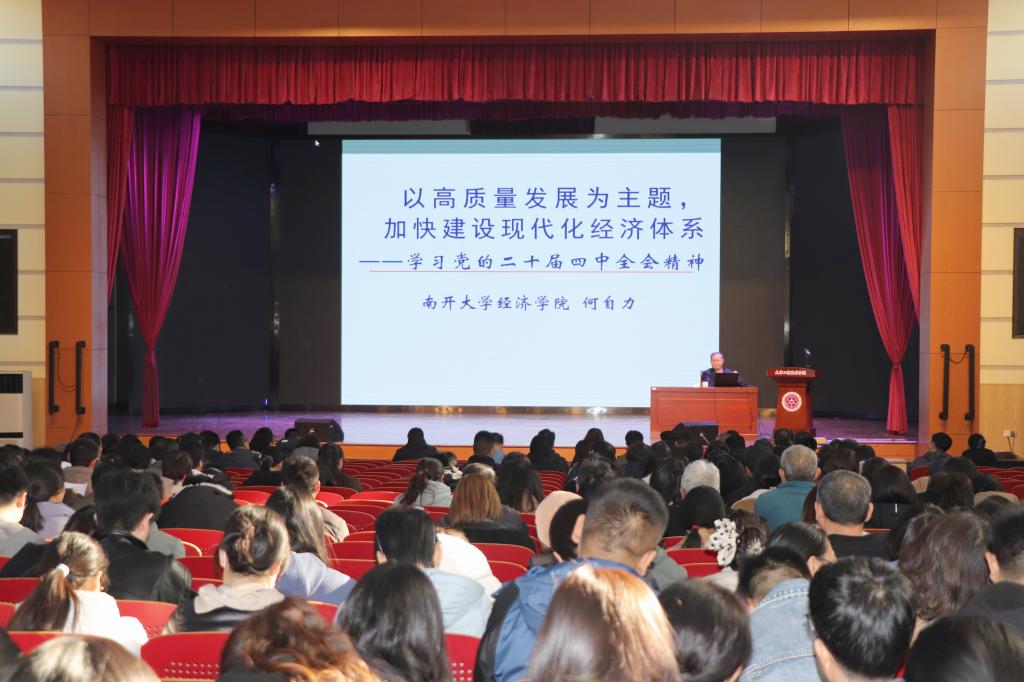 11 月 21 日,天津工业职业学院举办“学习贯彻党的二十届四中全会精神”专题讲座,讲座特邀中央马克思主义理论研究与建设工程专家,南开大学经济学院教授何自力作深度解读。学校领导班子成员、全体教职工参加,讲座由党委书记汪坪主持。